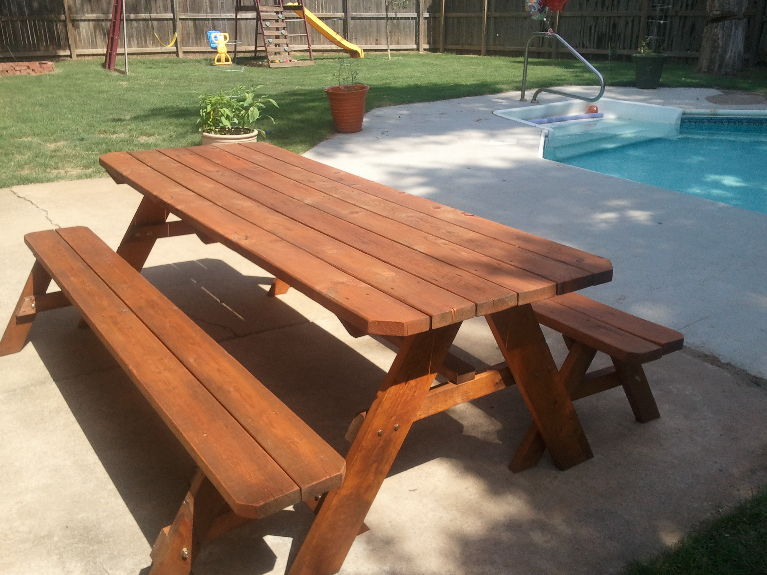 I’ve been building custom Picnic Tables along with fences. The Tables can be made to your length and width specifications as well as with movable or attached benches. The one in the picture here will seat 8 comfortably! Let me know if there’s any interest out there!