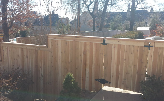 A Classy way to dress up a fence that goes up a steep grade, or along landscaping. The additional cost is minimal but the effect is dramatic! Call me today for a free estimate!